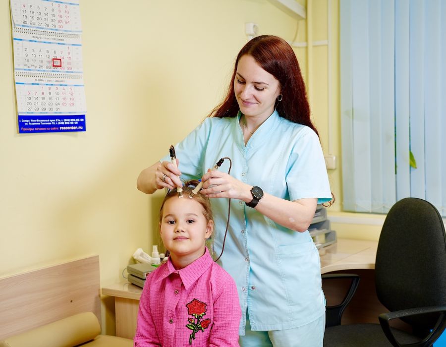 В «Реацентре Волгоградский» детям с нарушениями развития проводят электроэнцефалограмму. ЭЭГ позволяет детскому неврологу оценить работу мозга и сделать выводы:
